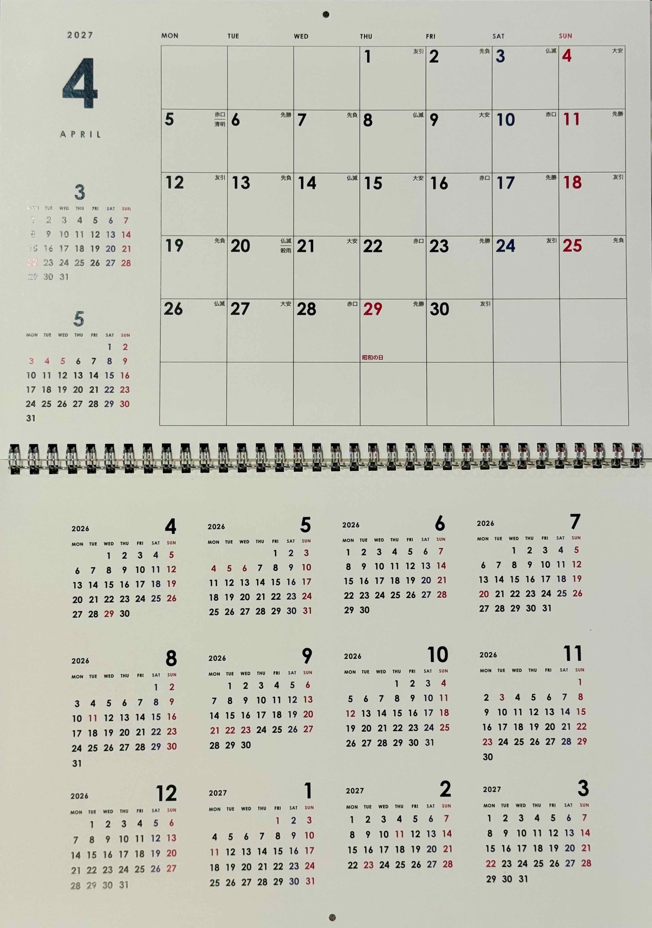 ◼︎2026年4月~2027年3月 卓上カレンダー