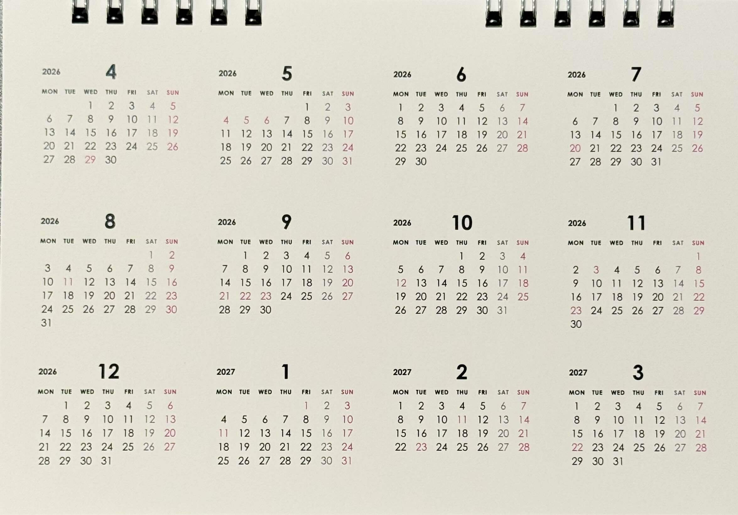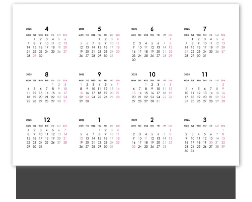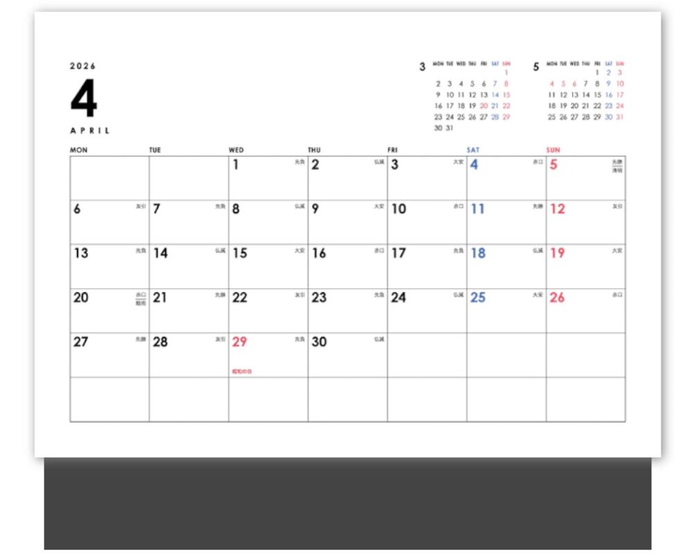 ※こちらは2026年度のカレンダーです。